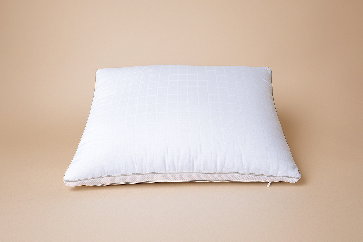 L’enveloppe satinée à carreaux 100% coton offre un toucher luxueux et respirant. Les bandes latérales 3D blanches favorisent une aération continue, maintenant l’oreiller frais et sain toute la nuit. Ce mélange de matériaux nobles et techniques assure une hygiène parfaite et un confort durable.
